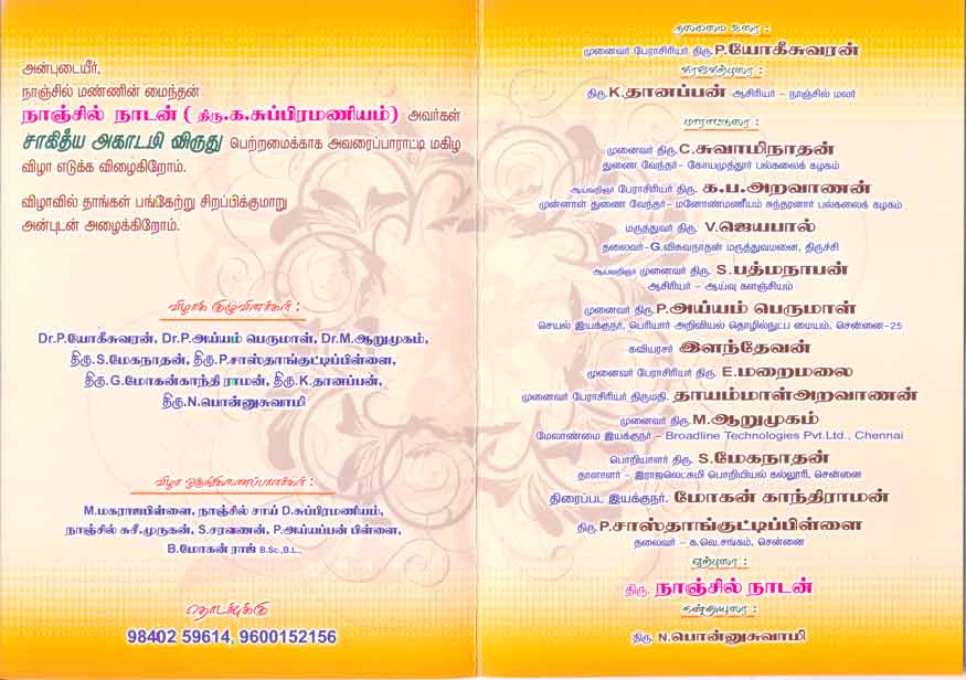 - IAS Academy உணவு வகைகள் அவசர உதவி குழு Free ADS Donate Blood மக்கள் இயக்கம் நம்மவர்கள் எழுதிய புத்தகங்கள் சமுதாய நடுவர் தீர்ப்பாயம் நாஞ்சில் மலர்